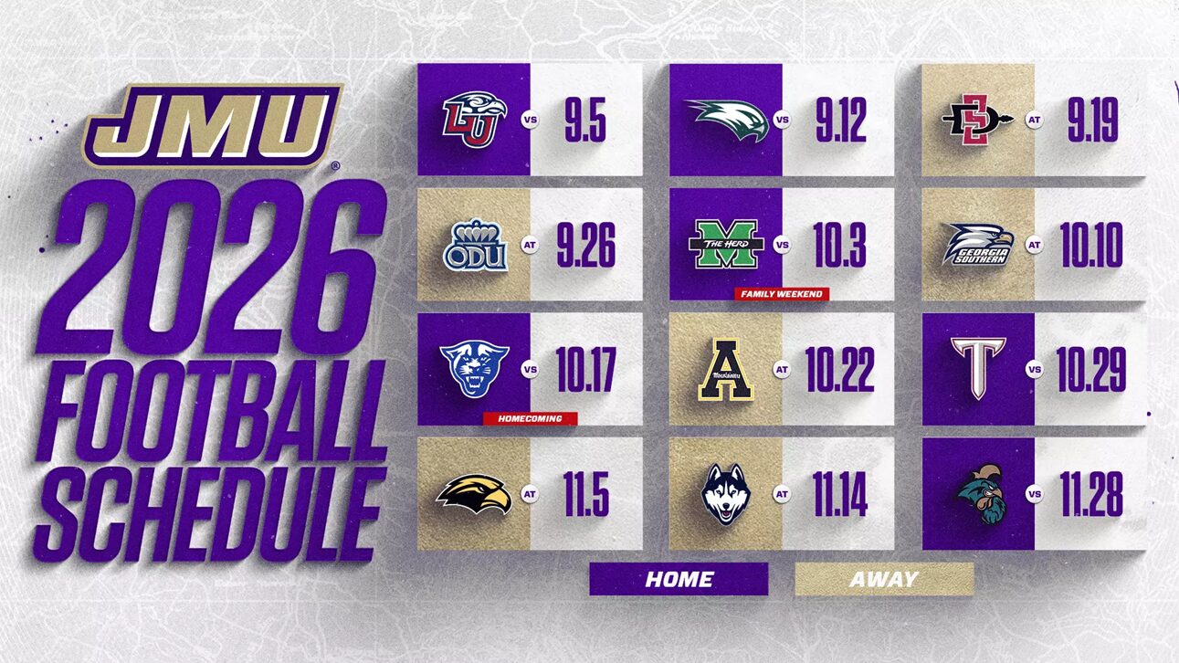 James Madison Athletics, in coordination with the Sun Belt Conference, has unveiled its complete 2026 football schedule, featuring 12 games with six at home and six on the road.